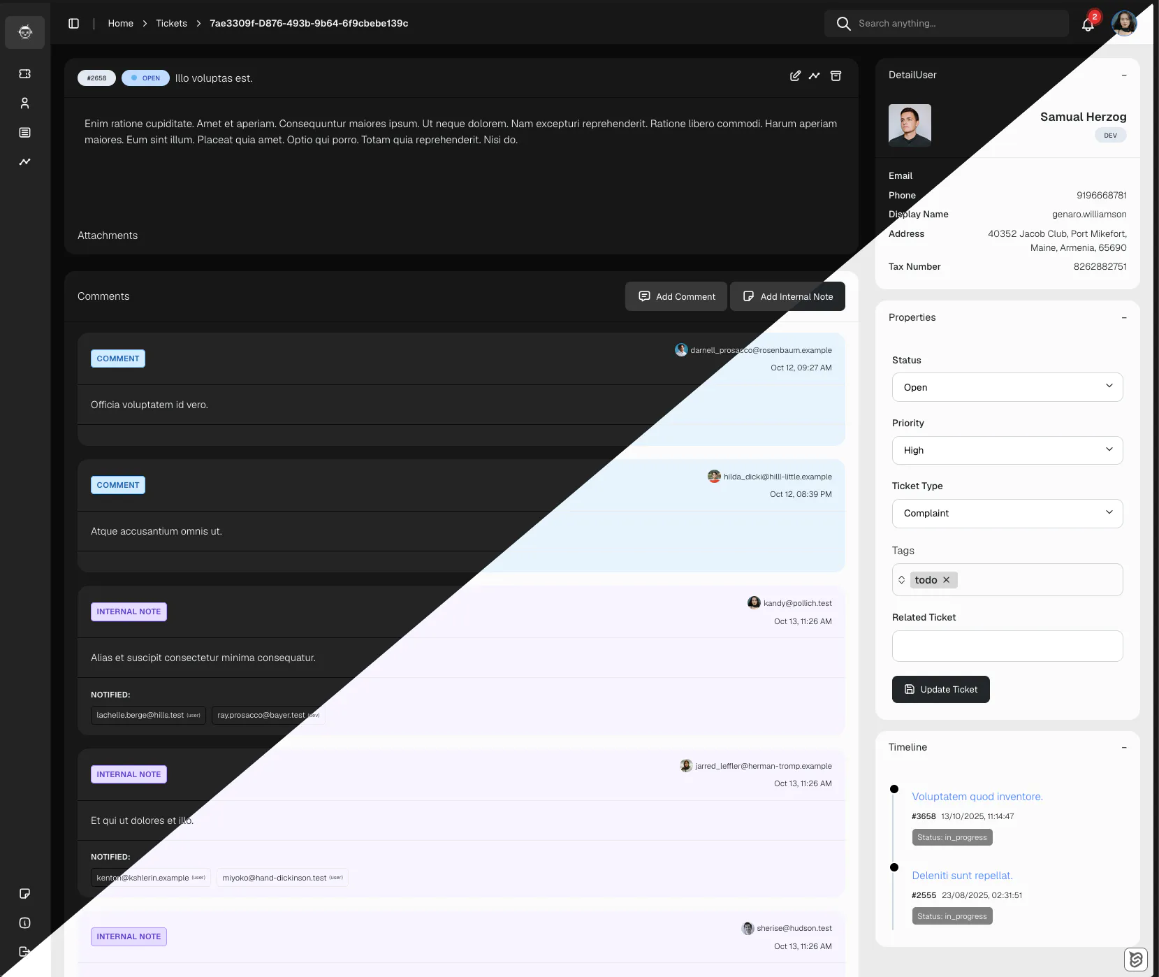 Ticket-Support is a powerful support platform designed to streamline customer service operations. Built with Rails as the backend and Svelte for a smooth, responsive user experience, it offers a range of features to help teams manage tickets efficiently: